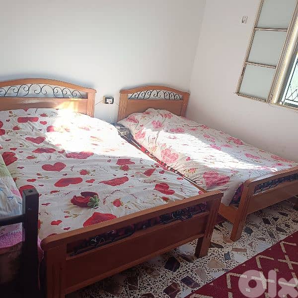 سرير عدد ٢ مع فرشة عدد٢ عرض ١٢٠ سم خشب سنديان بحاله جيدة جدا