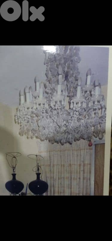 حوالي ٤ ثريات قديمة كريستال عمرها حوالي ٤٠ سنة الحالة مفكفكة تحتاج الى صيانة واعادة تأهيل