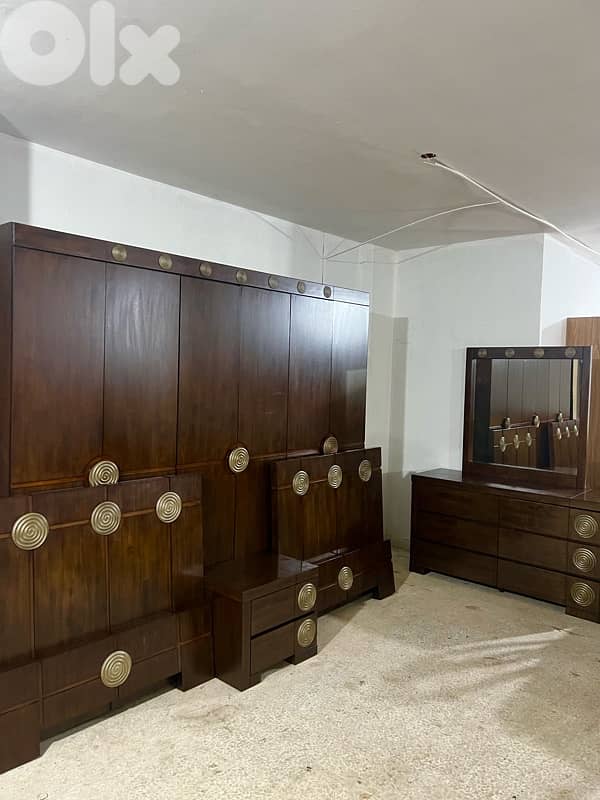 غرفة نوم رئيسية ولاديه مستعمله شبه الوكاله. خشب مسيف وزان ملبس قشره سنديان. تتألف من خزانه ست درف. وشفنيره مع مرايه . وكمود عدد واحد. وتختين مفرد ونص. نبيع ونشتري مستعمل . لاتوصل لاستفسار-81752815.