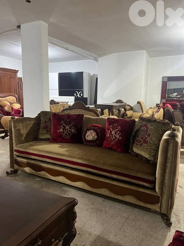 طقم كنبايات ملكي حفر خشب زان اربع قطع وطاولة شبه جديد