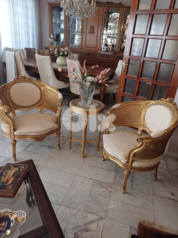 تحفه نادرة كوان من كرسيين صالون مع طااوله ملبس ورق ذهب 24