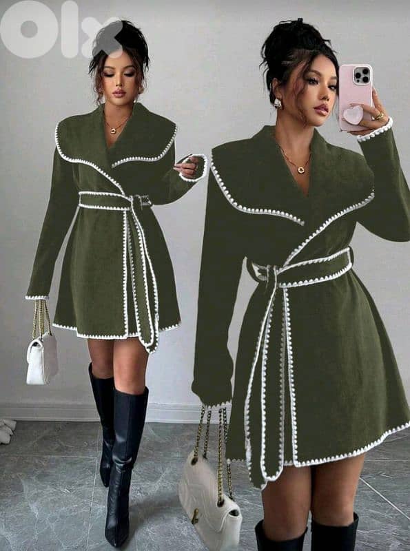 Elenzga حزام خصر أنيق بلون متباين للسيدات، جاكيت عادي مقاس s/m/l/xl سعر ٢٥$ اما اسود ٣٠$