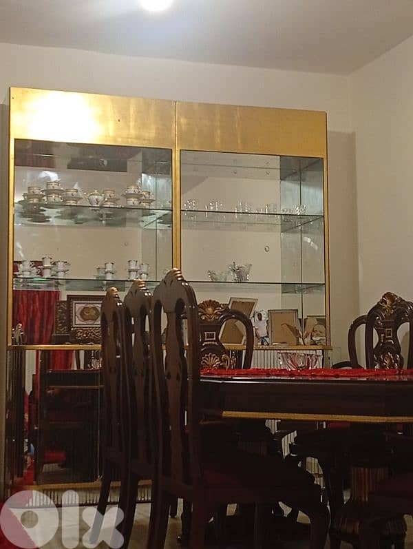 طاولة سفرة 10 كراسي خشب زين+ مع فاترين خشب زين