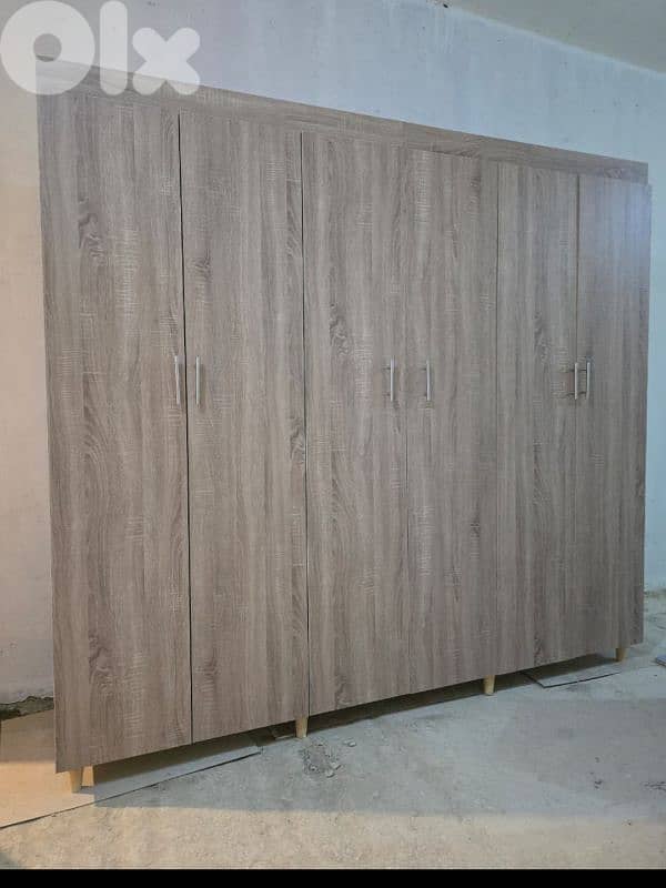 خزانة ست درف عرض 240 سم غمق كبير 47 سم ارتفاع 220 سم مع الاجرين درفتين عجنب بقلبا رف وتعليقة ورف من تحت ميلة تانية كمان درفتين بقلبا رف وتعليقة ورف من تحت بنص درفتين بقلبا رف وتعليقة ورف من تحت لون بيج فاتح ملبسة من برا وجوا لون ابيض مسكات ستالس تفصيل جديد حرق اسعار بالجمله متوفرة بعدة الوان خدمة توصيل مؤمن إلى جميع المناطق اللبنانية