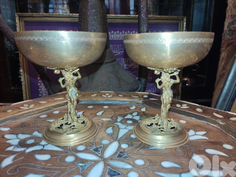 مصنوعين من النحاس المطلي بالذهب، بقاعدة منحوتة على شكل أنثى تحمل الكأس