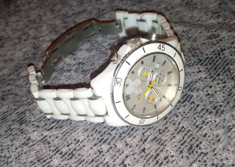 ساعة سويسرية أصلية مميزه مصنوعة من السيراميك باللون الابيض ساعة كتير نظيفه ماركة (BLADE) مطلوب فيها ١٢٠ دولار