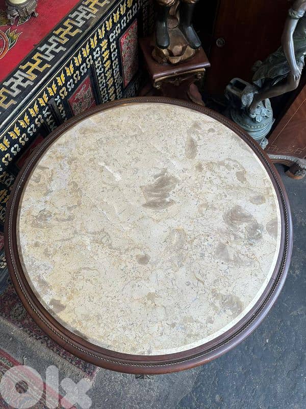 طاولة نص مبرومة مصري وج رخام خشب زان انتيك مرصعة نحاس مستعملة بحالة ممتازة كتير مرتبة وحلوة مطلوب فيها 375$ وبتزبط السعر للتواصل
