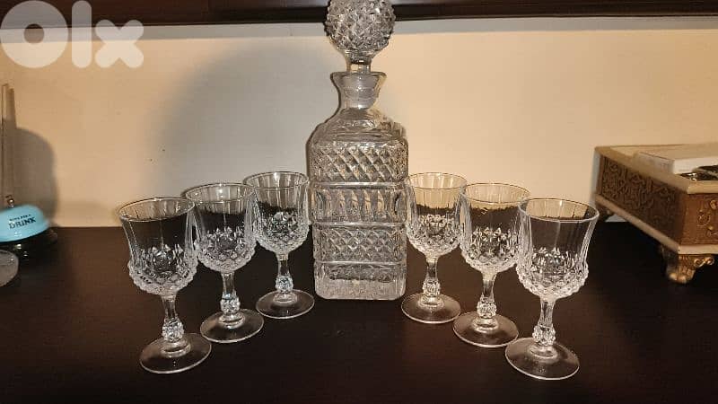 طقم قنينة +٦ كؤوس بحالة ممتازة