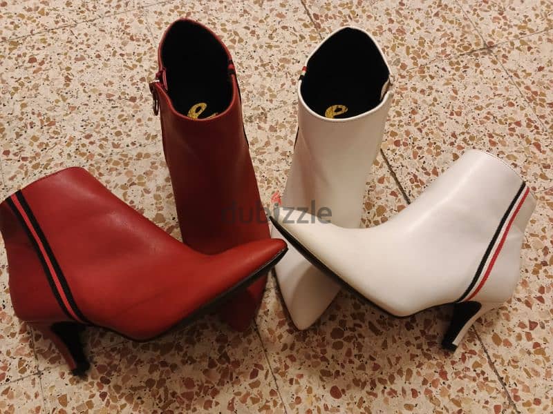 بوط عدد ٢ واحد ابيض وتاني بوردو قياس ٣٨ لي بهمو يحكيني سعر ل تنان ٥٠$