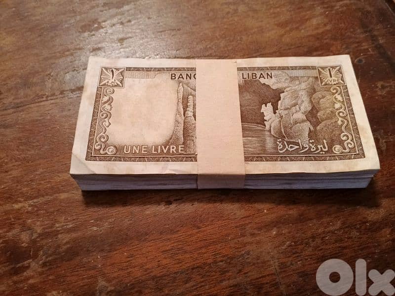 باكيه ١٠٠ورقة من فئة الليرة القديمة ما زالت على حالها كما خرجت من المصرف ارقام تسلسلية ورا بعض من النوادر ٧١٢٤٤٤٧١