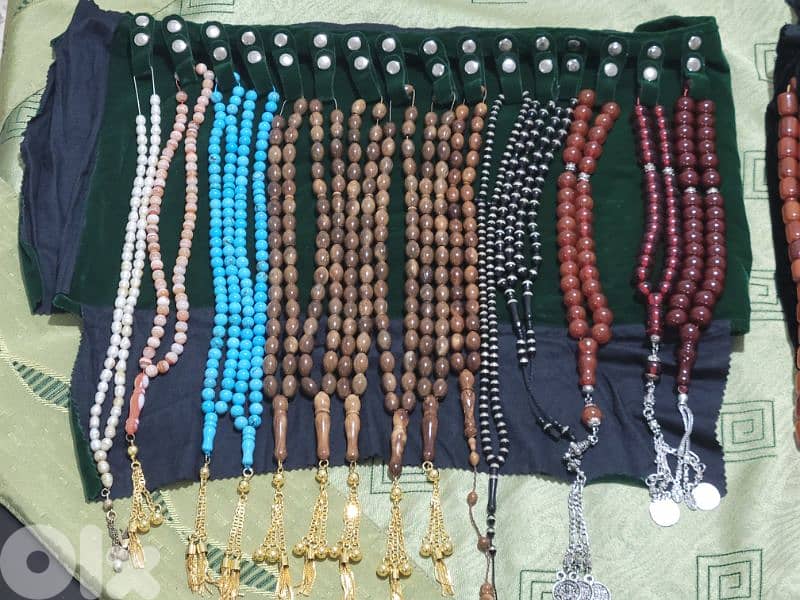 مسابح مسك، عقيق، فيروز نبالي، و فيروز أفغاني، مرجان، كوك، كوربا.