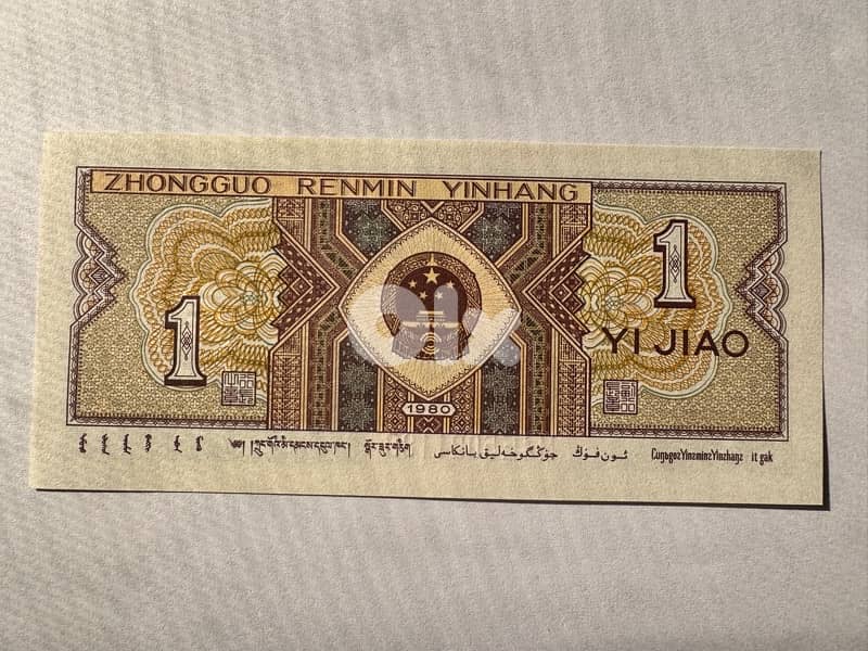 1 Chinese YI JIAO (UNC) 1980 one of a kind very beautiful currency very rare piece in an (UNC) condition from the 80’s “negotiable”