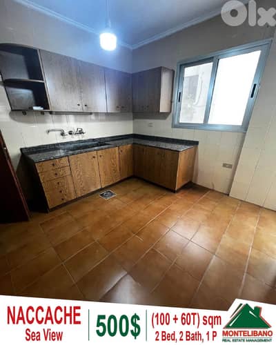 100 sqm Apartment For Rent in Naccache (نقاش) with 60 sqm Terrace and Sea View