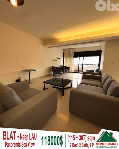 Fully Furnished 115 sqm Apartment For Sale in Blat (بلاط) with 30 sqm Terrace and Panoramic Sea View
