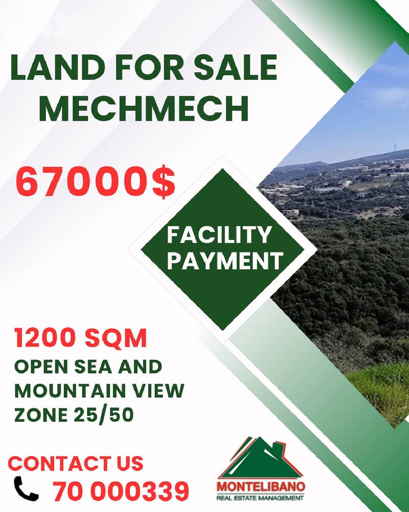 1200 sqm Land For Sale in Mechmech with Facility Payment + Open Sea & Mountain View