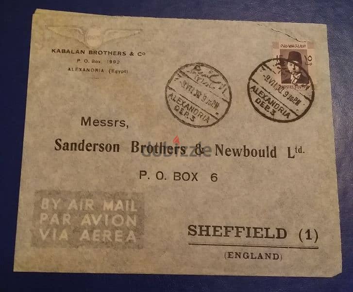 ظرف بريدي مصري قديم موجه من الإسكندرية الى بريطانيا