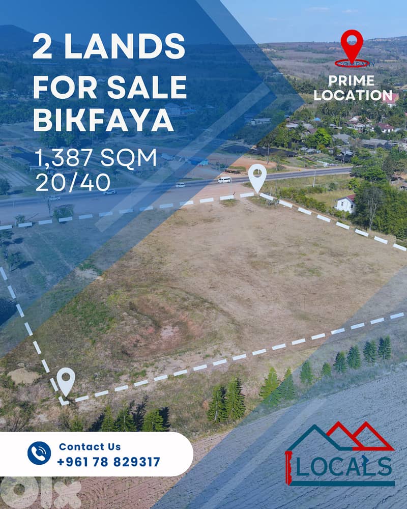 قطعتا أرض للبيع (١٬٣٨٧ متر مربع لكل قطعة) – بكفيا