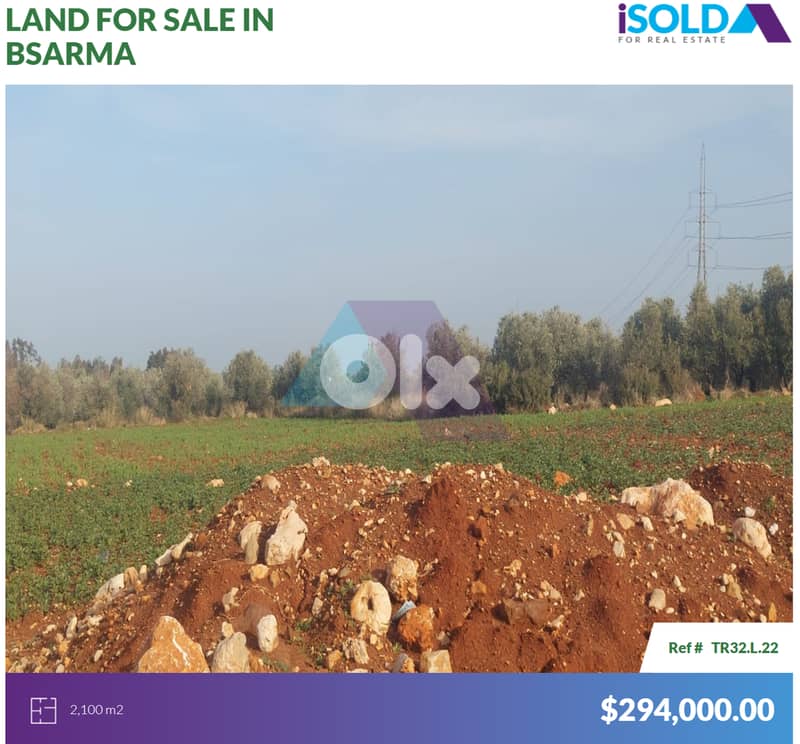 A 2100 m2 land having an open view for sale in Bsarma