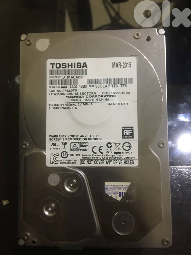 Hard Disk Toshiba 2TB Used & Working Perfect 100% For Sale (Replaced By SSD)