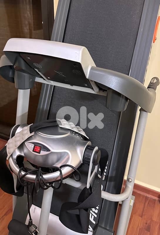 3-in-1 treadmill combining a walking/running belt, a vibration plate for full-body toning, and sit-up bars for core exercises, allowing cardio, muscle activation, and abs training in one compact machine. In great conditions
