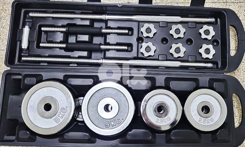 50kg adjustable cast iron barbell and dumbells set weights with wheeled storage case. Condition: like new ( bought it last year from Ishtari, buying for travel purpose). Original price was 175$