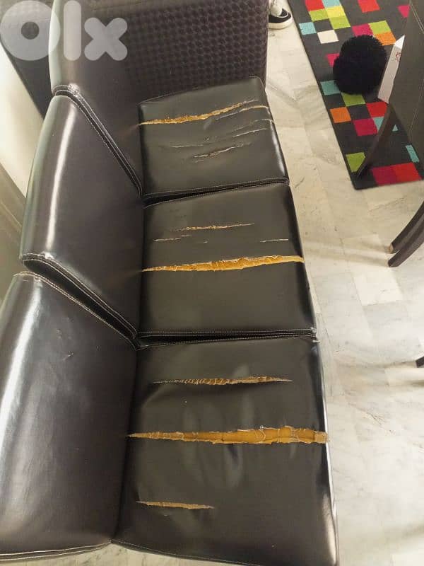 six dining chairs dark brown in good condition .