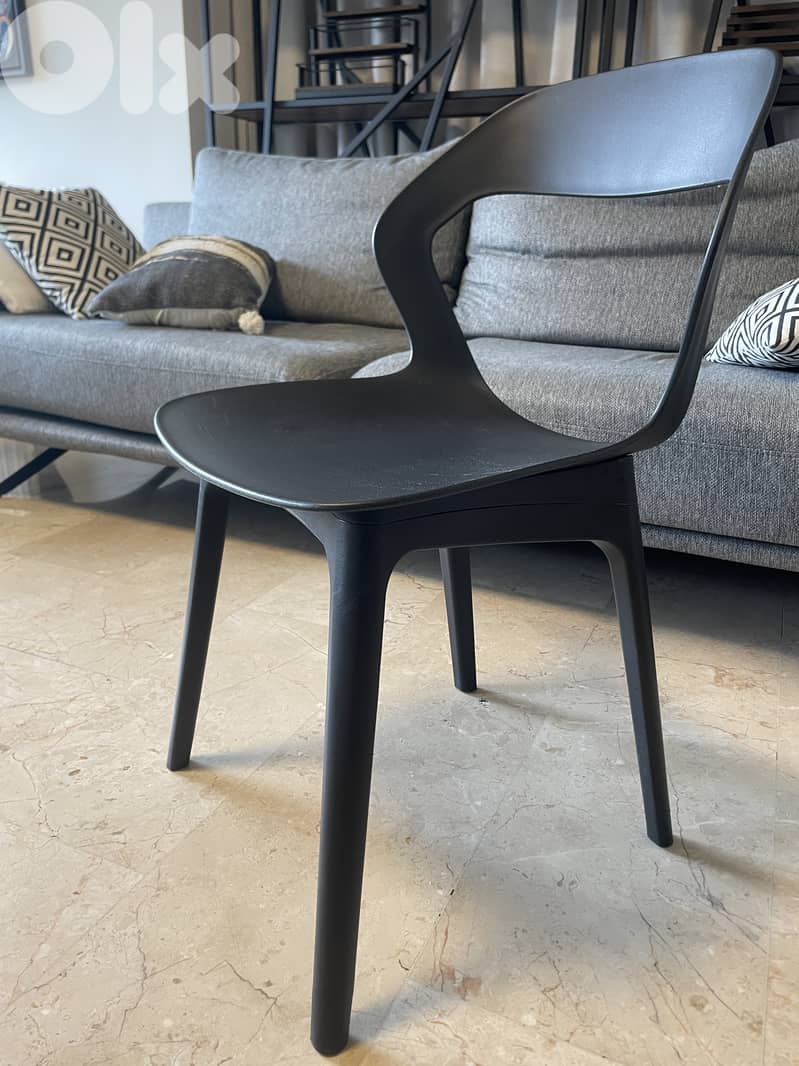 7 Modern black chair with a clean, minimalist design and smooth curved backrest.