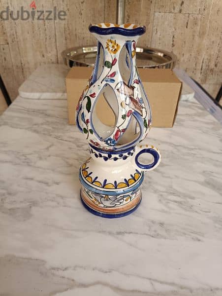 A ceramic hand painted candle holder