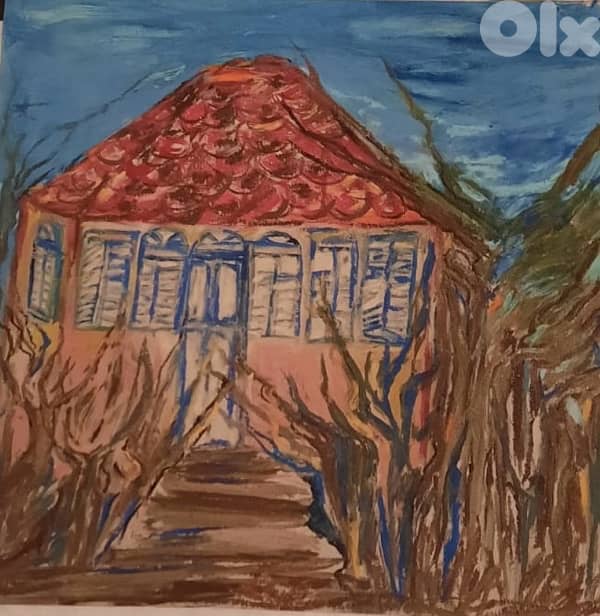A quiet house with a thousand stories. Hand-painted, rich with texture and feeling - this piece captures the beauty of stillness and memory. One of a kind. size approx 25x20 call us for more info