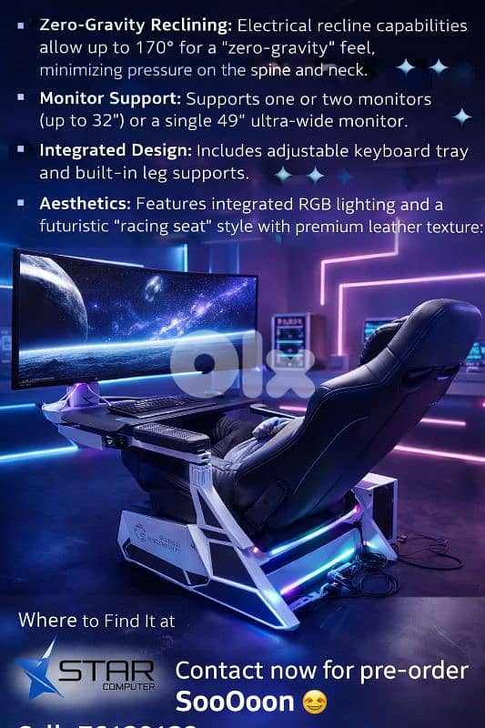 • Optional gaming chair with ventilation & heating