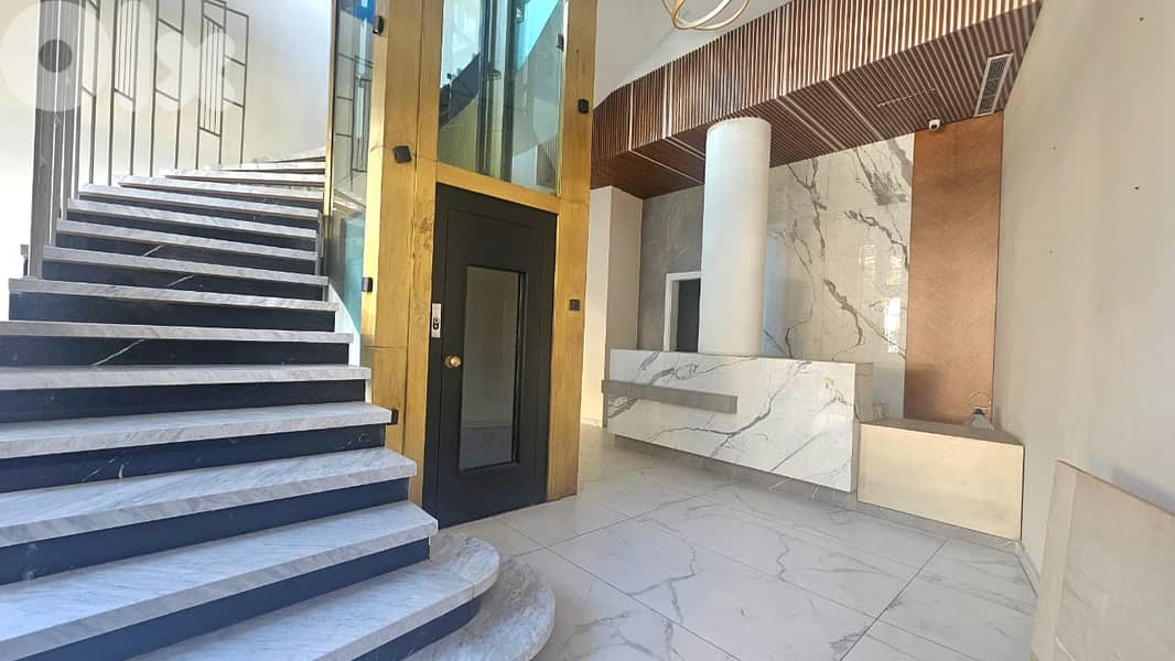 Elegantly designed, it offers 82 sqm on the ground floor and 310 sqm on the first floor, providing excellent layout flexibility. The property includes a welcoming reception area, 10 rooms, a fully equipped kitchen, 3 WCs, internal stairs, an in-house elevator, and a front terrace, all within a luxurious setting.