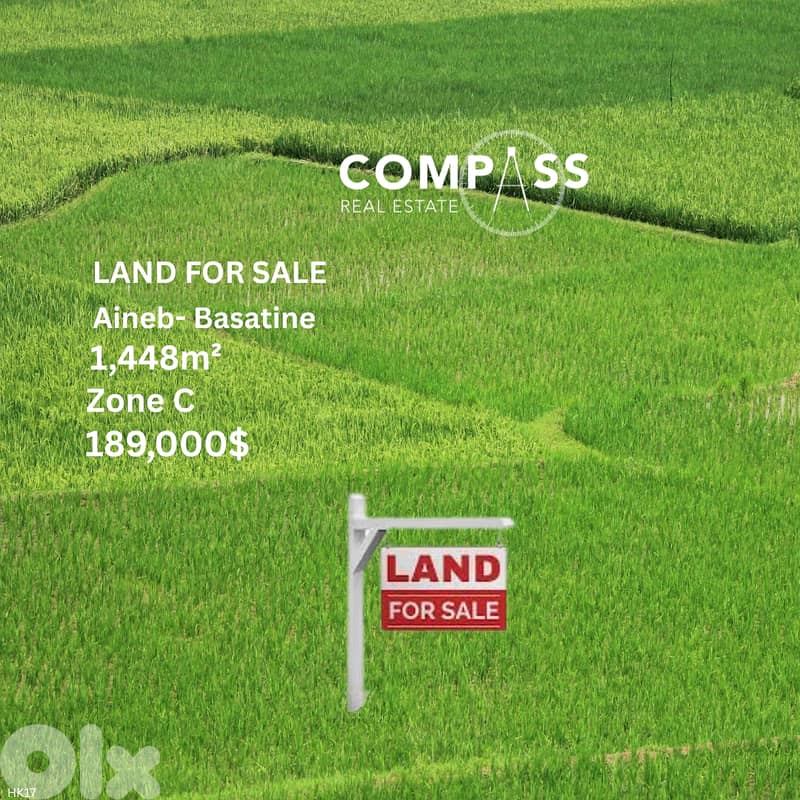 Location: Aineb- Basatine Land area: 1,448 sqm Zone C Price: 189,000$ FOR MORE DETAILS :81-626 656 or DM HK17