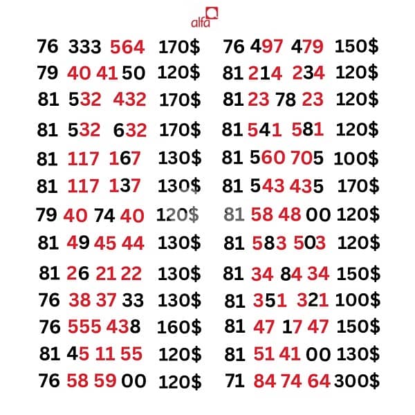Alfa 03Numbers we deliver all leb