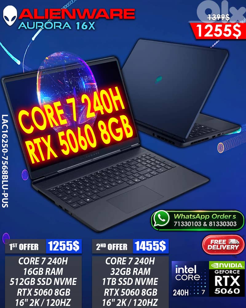 ALIENWARE AURORA 16X LAC16250-7568BLU-PUS GAMING LAPTOP
