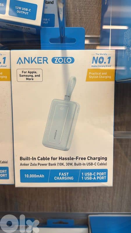 Anker zolo power bank (10k,30w,built in usb-c cable) blue 35$ last