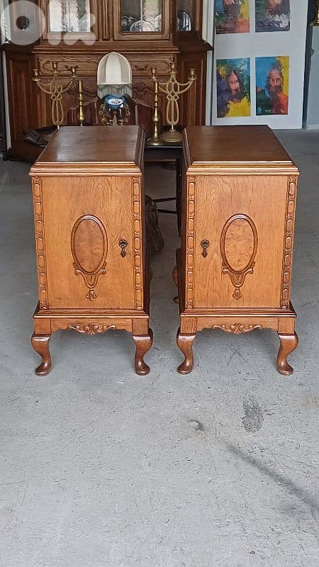 جوز خزائن كلاسيكية متناظرة، نقش يدوي أنيق ومدالية بيضاوية، على أرجل Queen Anne، بفخامة تراثية واضحة. 74 × 64 × 34 CM محلات ANTIQUE ABOU KHATER زحلة حوش الامراء ٧٠٣٢١٣٦١ يوجد ديلفري لكافة المناطق $ ١٤٠