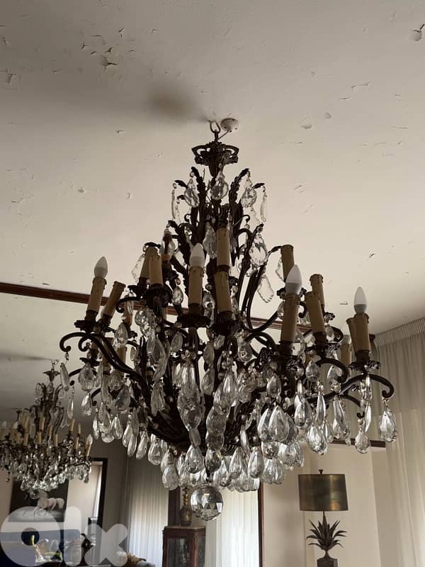 Beautiful vintage crystal chandeliers with detailed bronze/brass frames and original crystal drops. Classic candle-style design, elegant and timeless — perfect for living rooms, dining areas, or high-ceiling spaces. Both in very good condition and working perfectly.