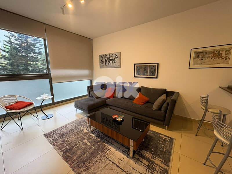 شقة مفروشة فاخرة وعالية الجودة بمساحة 65 متر مربع، في موقع مميز ضمن مجتمع راقٍ في الاشرفية.