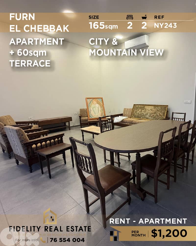 A 165 SQM apartment for rent in Furn El Chebbak. NY243