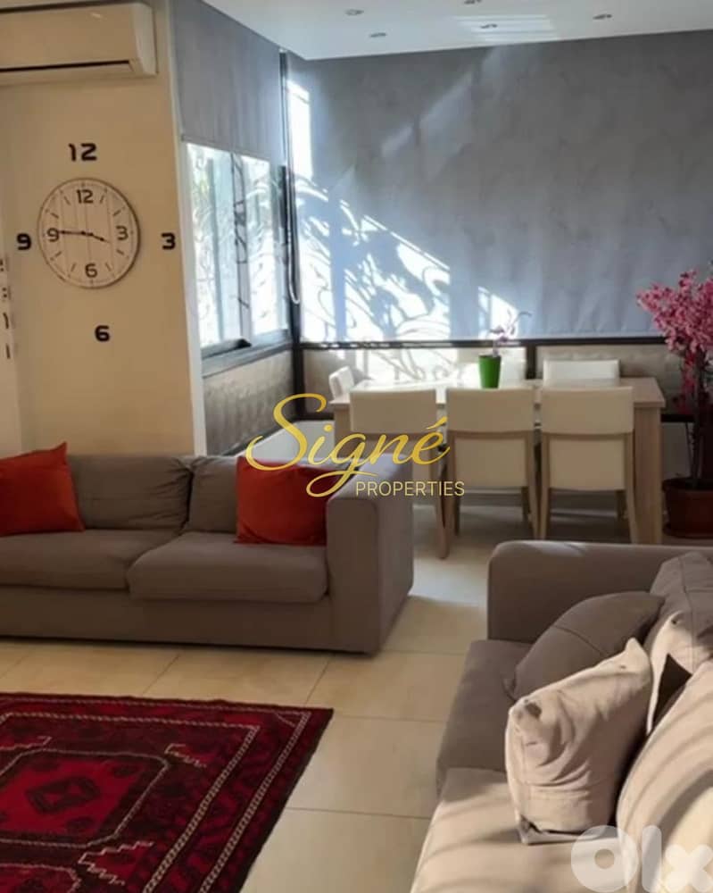Signé Properties presents this well-appointed 110 sqm furnished apartment for rent in Naccache, offering a practical layout and comfortable living in a calm residential area.
