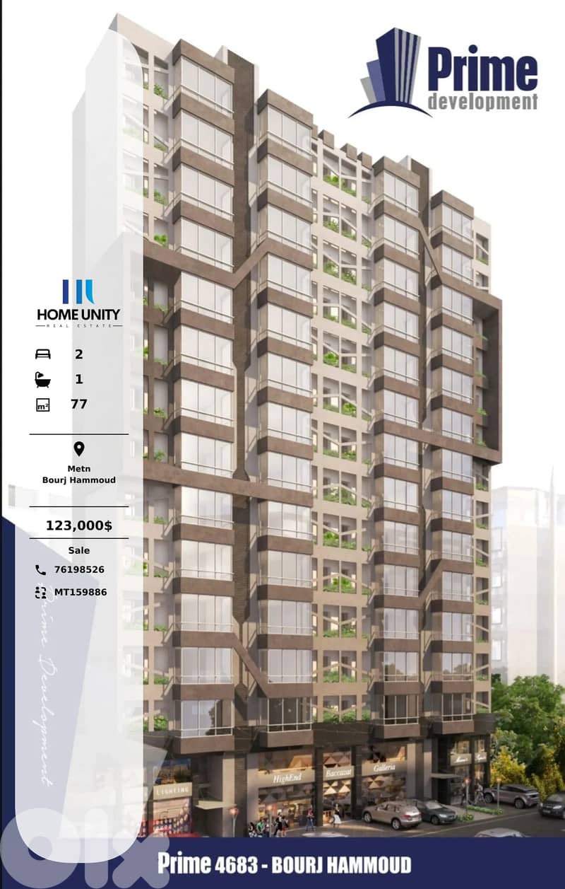 This 77 sqm 2-bedroom apartment is available for sale in Bourj Hammoud, Metn, the property features 1 bathroom(s). The property includes 1 parking space. and is situated in a brand new building. Current condition of the property is Under construction.