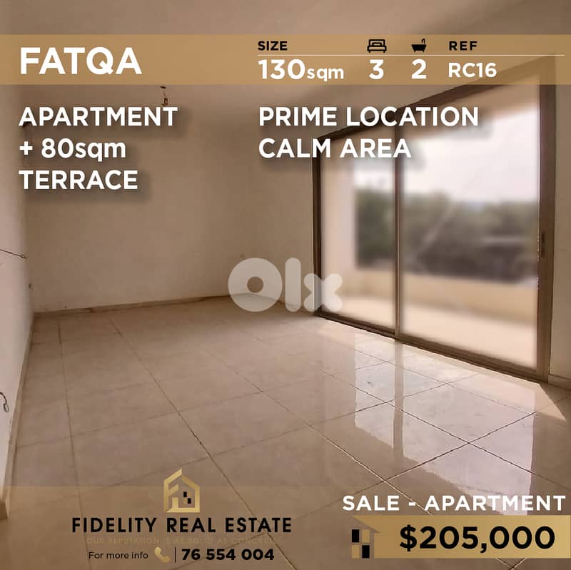 شقة جميلة بمساحة ١٣٠ مترًا مربعًا مع تراس بمساحة ٨٠ مترًا مربعًا للبيع في فتقا RC١٦