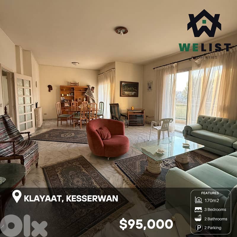 170sqm simplex for sale in Klayaat, Kesserwan