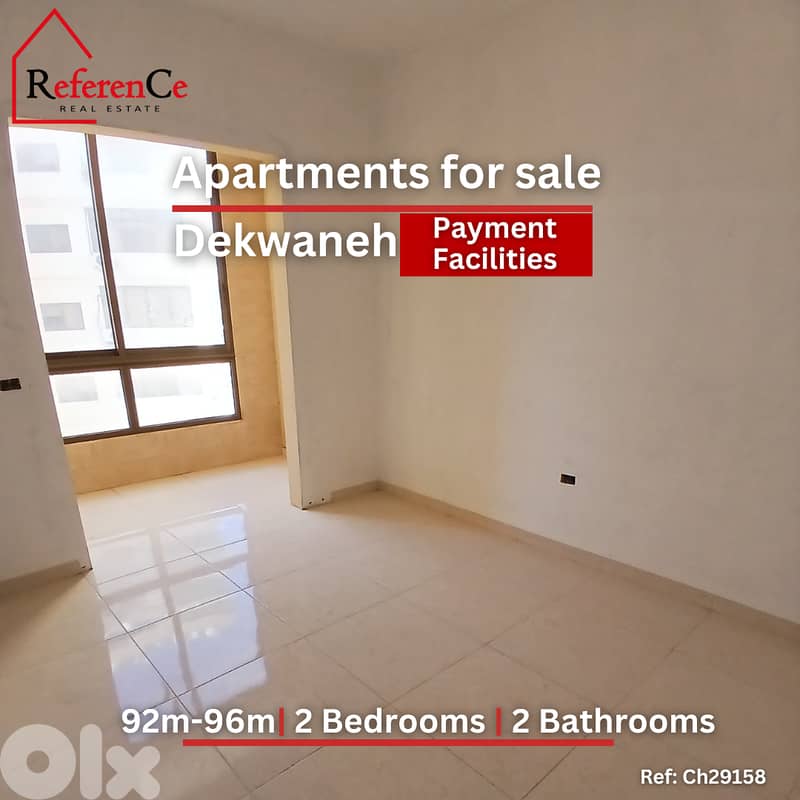 New apartments for sale with payment facilities - 92m and 96m spaces - available from 2 th floor to 9 floor - building age 5 years - very good condition - located in dekwaneh