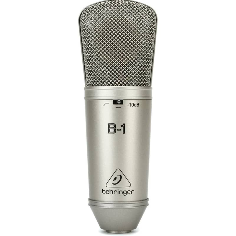 The Behringer B-1 large diaphragm condenser mic gives you a lot of microphone for not a lot of money. You get the crisp sound of a studio condenser mic at a price that's great for home and project studios. The B-1 features a low-cut filter at 75Hz to give you control over the low-end response of your recordings. And thanks to the 10dB pad, you can use the B-1 on loud sound sources like drums and guitar amps. Behringer even gives you a shockmount, windscreen, and aluminum storage case with the B-1. If you're just starting to record, or just need an alternative studio mic at a low cost, you'll appreciate the Behringer B-1 condenser mic.