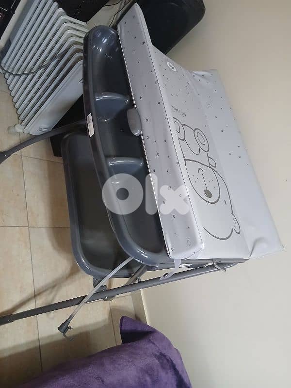 baby bathtub with stand and changing table and a space to store diapers and baby items. very good condition. like new.