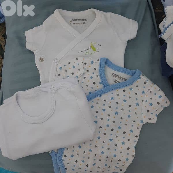 Newborn fanella and shirts each 1 $ (6 pieces) newborn overall 2 $ 3 to 6 months fanellas 2 $ (×3) 1 to 3 months overalls 2 $ (3 pieces)