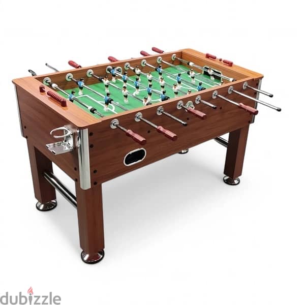 Expertly crafted for the ultimate gaming experience, the Double Star Soccer Table features heavy MDF wood and sturdy steel rods. With a size of 5ft, this table provides ample space for intense matches. The PVC laminate and plastic dummies players ensure durability while the wooden handles and scoring add to the authentic feel. Includes 2 36mm soccer balls for endless entertainment.