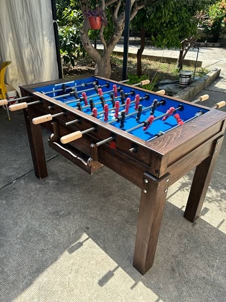 Soccer Table / Zayn Wood Soccer table brown edition players: black / red Zayn wood Dimensions: 147 cm x 76 cm x 86 cm Weight: 95 kg delivery and assembly available all over lebanon whatsapp for more info 70406003