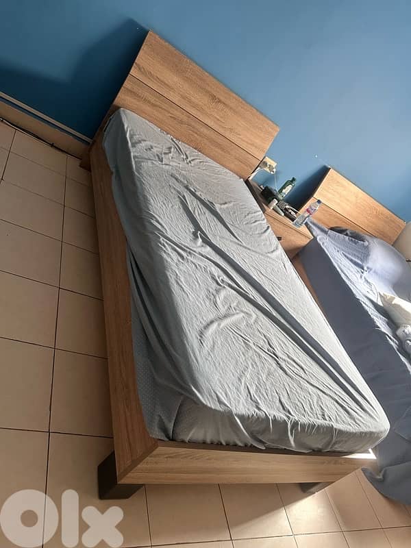 2 single beds + 2 mattresses + nightstand in good condition